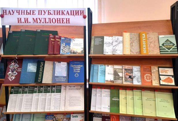 В читальном зале научной библиотеки представлена выставка научных публикаций главного научного сотрудника сектора языкознания ИЯЛИ КарНЦ РАН, д.ф.н, , члена –корреспондента РАН Ирмы Ивановны Муллонен.
